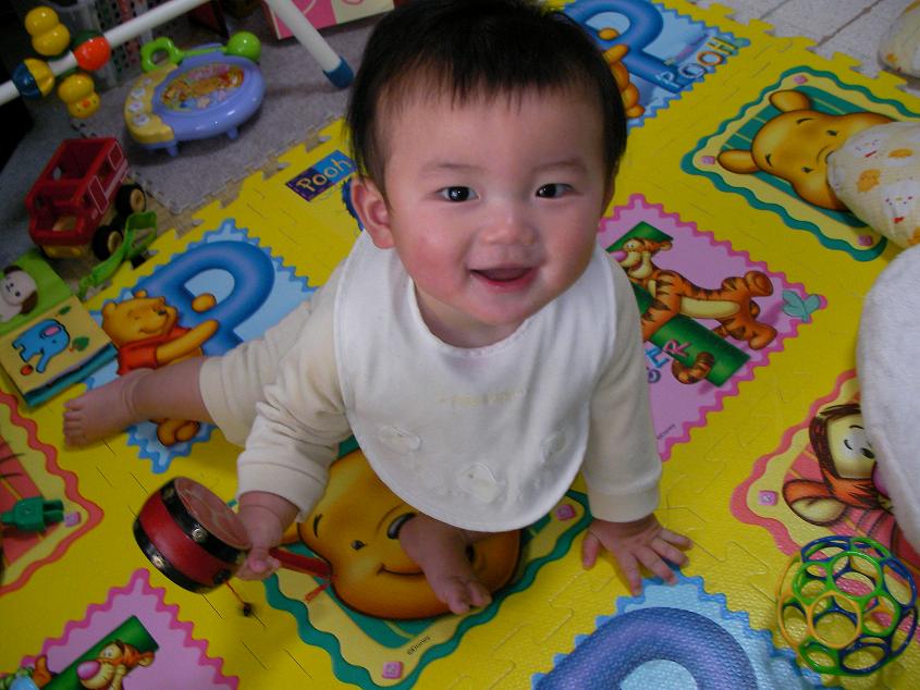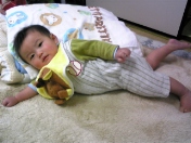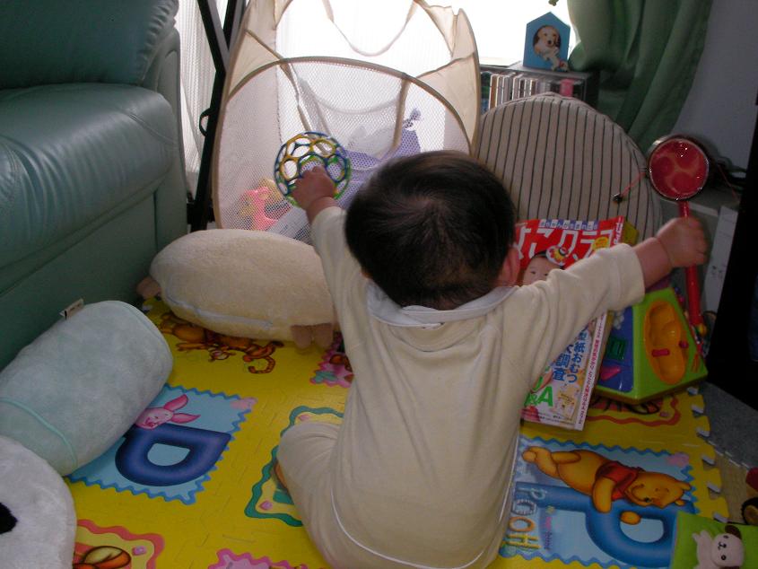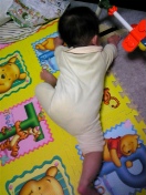 お座りした状態からうつぶせになるのが だいぶ上手になってきました でも、腕の力のほうが強いのか、 後ろに下がってしまいます 上手くなってはきたのですが、 失敗して、この状態のまま泣いちゃうことも多々あり