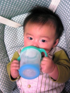 いずれ、マグカップで一人で飲めるようになる事を目標に、