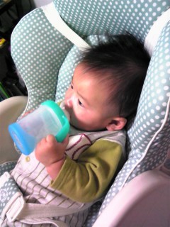 手では持てたけど、まだ上手に吸えないみたいだけど、