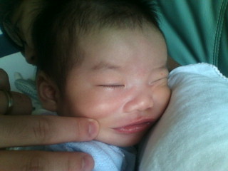 これで、お出かけ準備完了 今日はスムーズにできたからか、ちびっこもご機嫌です それにしても暑い 外出前後には、ちゃんと白湯を飲ませて水分補給してまっす