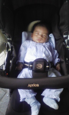 昨日は、親子三人で大きな公園にベビーカーで行き、 公園デビューを果たしました でも、ベビーカーの揺れがここちよいのか、 ずっとスヤスヤと愛車で熟睡してました 親はというと、そんな我が子を見ながらのランチタイム。 屋根付の休憩所のベンチで、サンドイッチとパンを頂きました