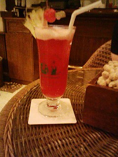 夜はラッフルズホテル内のロングバーでシンガポ-ルスリングを頂きました。