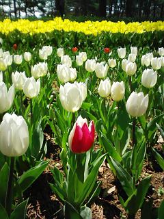 今見ごろの花は、チューリップ、スイセン、菜の花で、太陽に向かって、咲き誇っていた